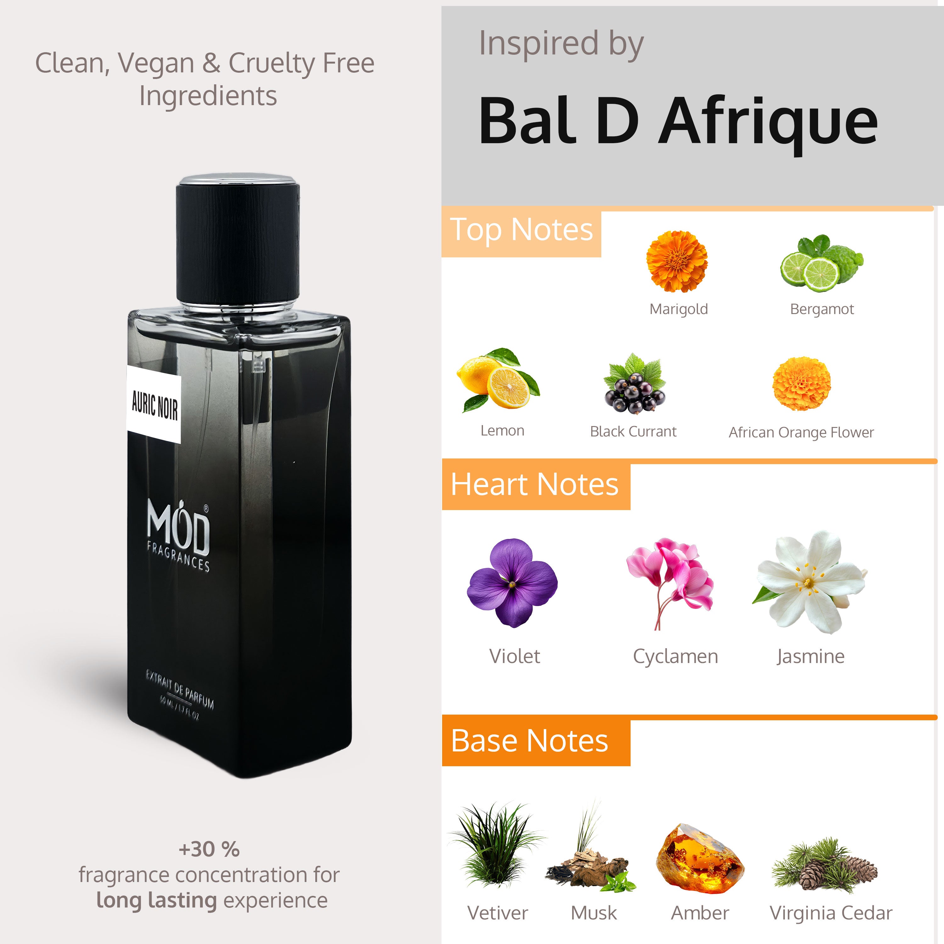 I don't have experience with Bal D Afrique but I did previously own another "inspired by" which was Paris Corner Emir Vibrant Vetiver Delight. The scent was great but didnt last long on my skin. Auric Noir is a match but lasts alot longer. MOD Fragrances is the place to shop when you want strong performance for low price.