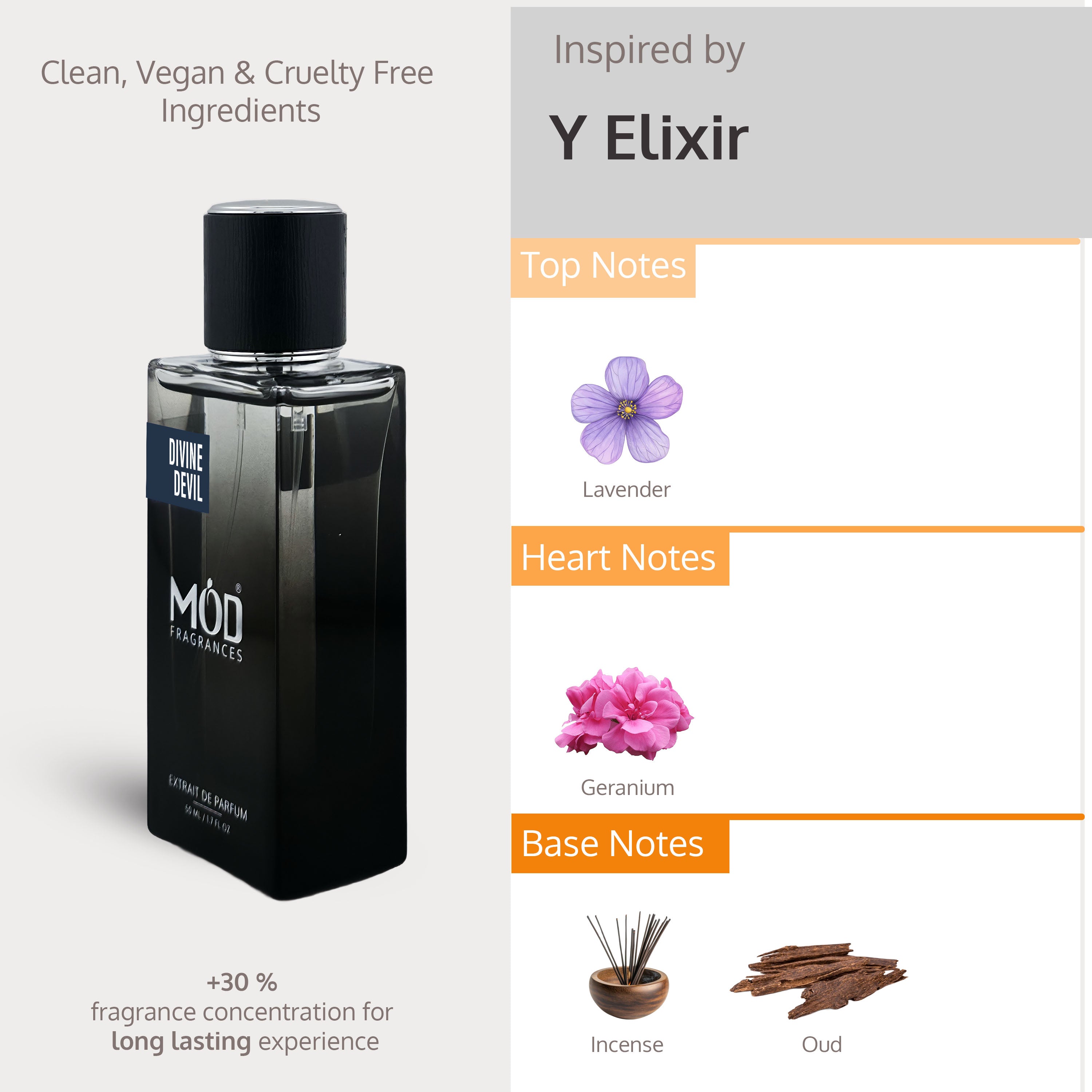 Mod Fragrances is defined by its commitment to crafting high-quality, designer-inspired scents with a refined touch. Each fragrance features an Extrait de Parfum concentration of 30–35%, ensuring richness and depth without being overpowering. We avoid heady, overly intense profiles in favor of smooth, balanced compositions that wear comfortably throughout the day. With a lasting power of 6 to 8+ hours—depending on skin chemistry—Mod fragrances offer enduring elegance. While we strive to stay as close as possible to the originals, slight differences in formulation and concentration create a unique interpretation of each scent.