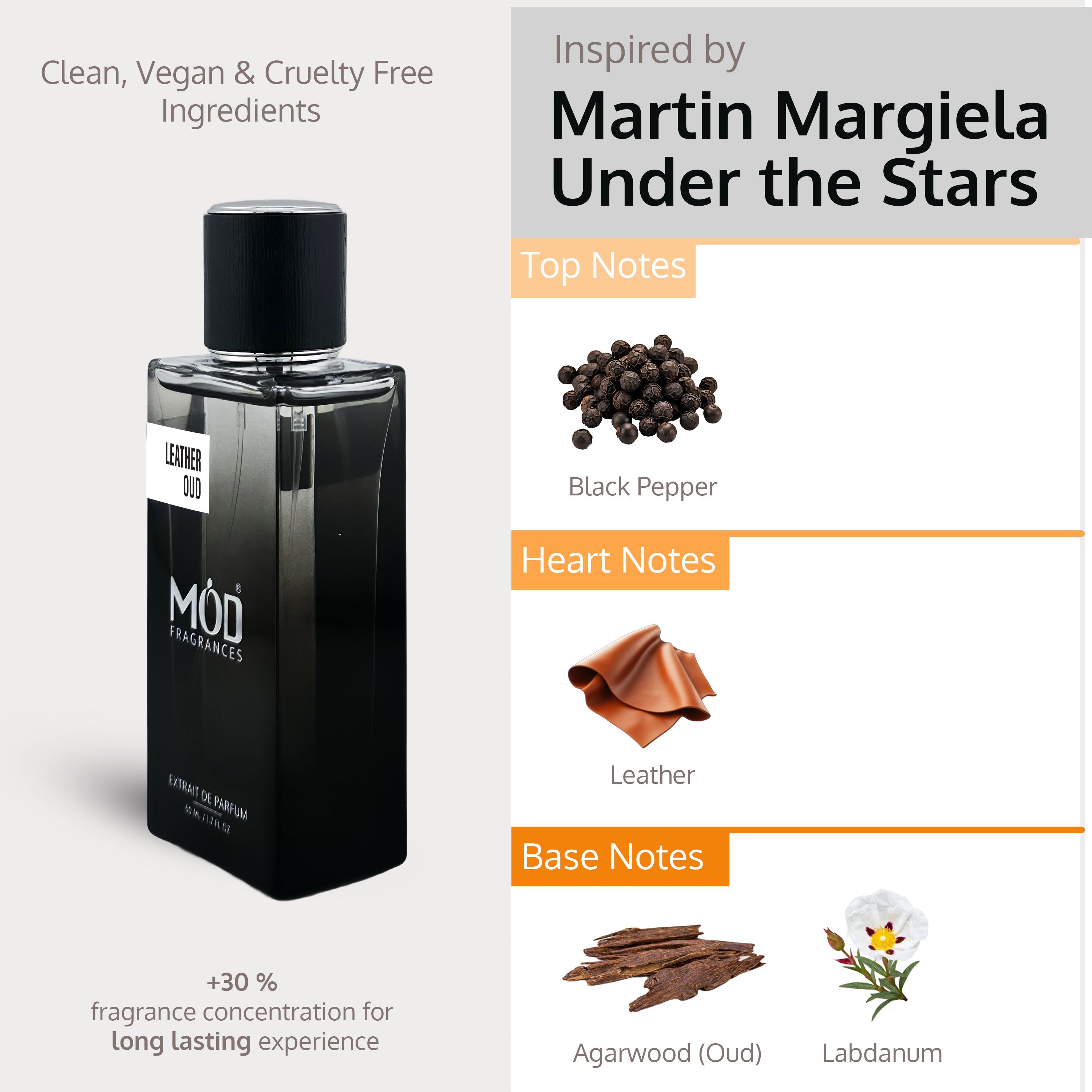 Mod Fragrances is defined by its commitment to crafting high-quality, designer-inspired scents with a refined touch. Each fragrance features an Extrait de Parfum concentration of 30–35%, ensuring richness and depth without being overpowering. We avoid heady, overly intense profiles in favor of smooth, balanced compositions that wear comfortably throughout the day. With a lasting power of 6 to 8+ hours—depending on skin chemistry—Mod fragrances offer enduring elegance. While we strive to stay as close as possible to the originals, slight differences in formulation and concentration create a unique interpretation of each scent.