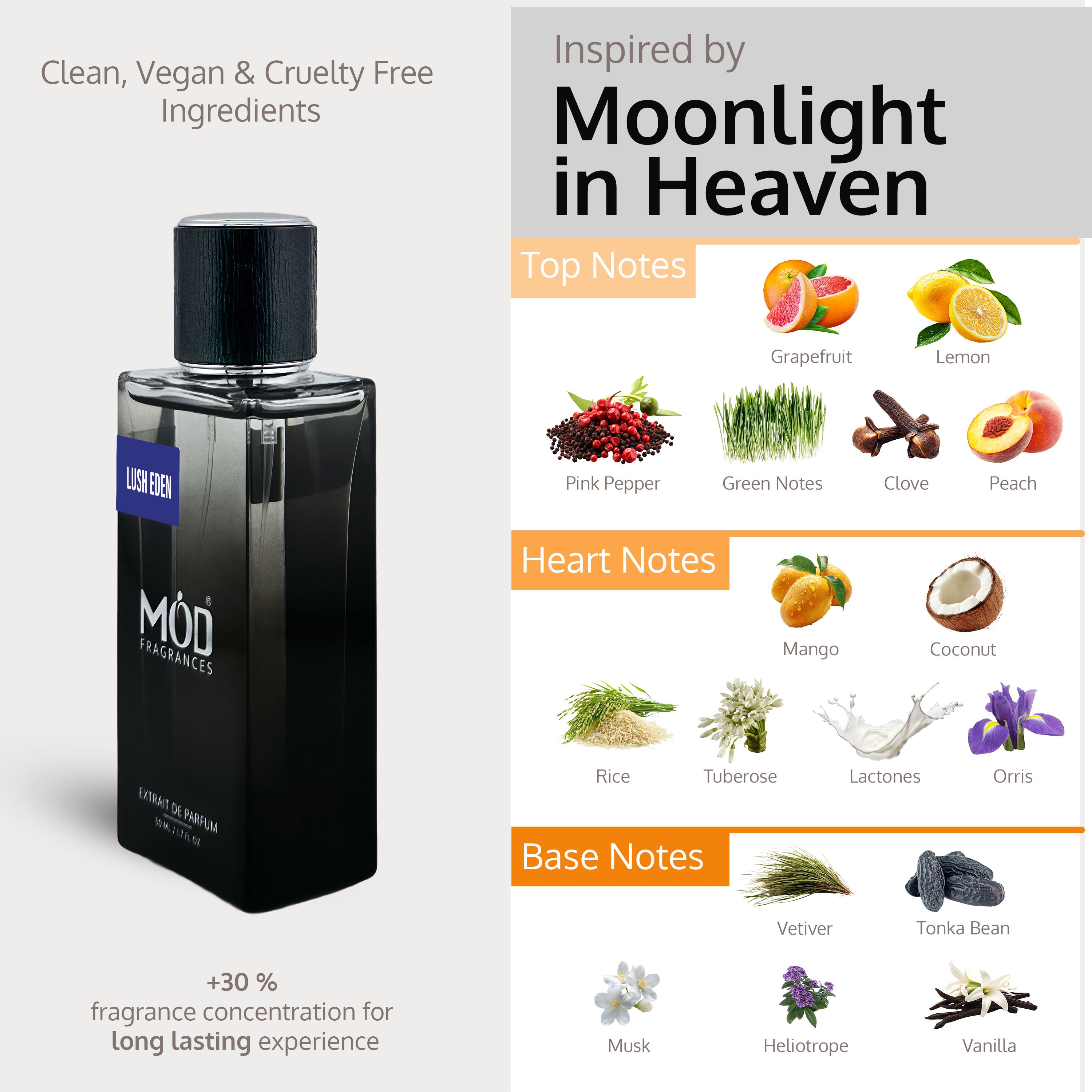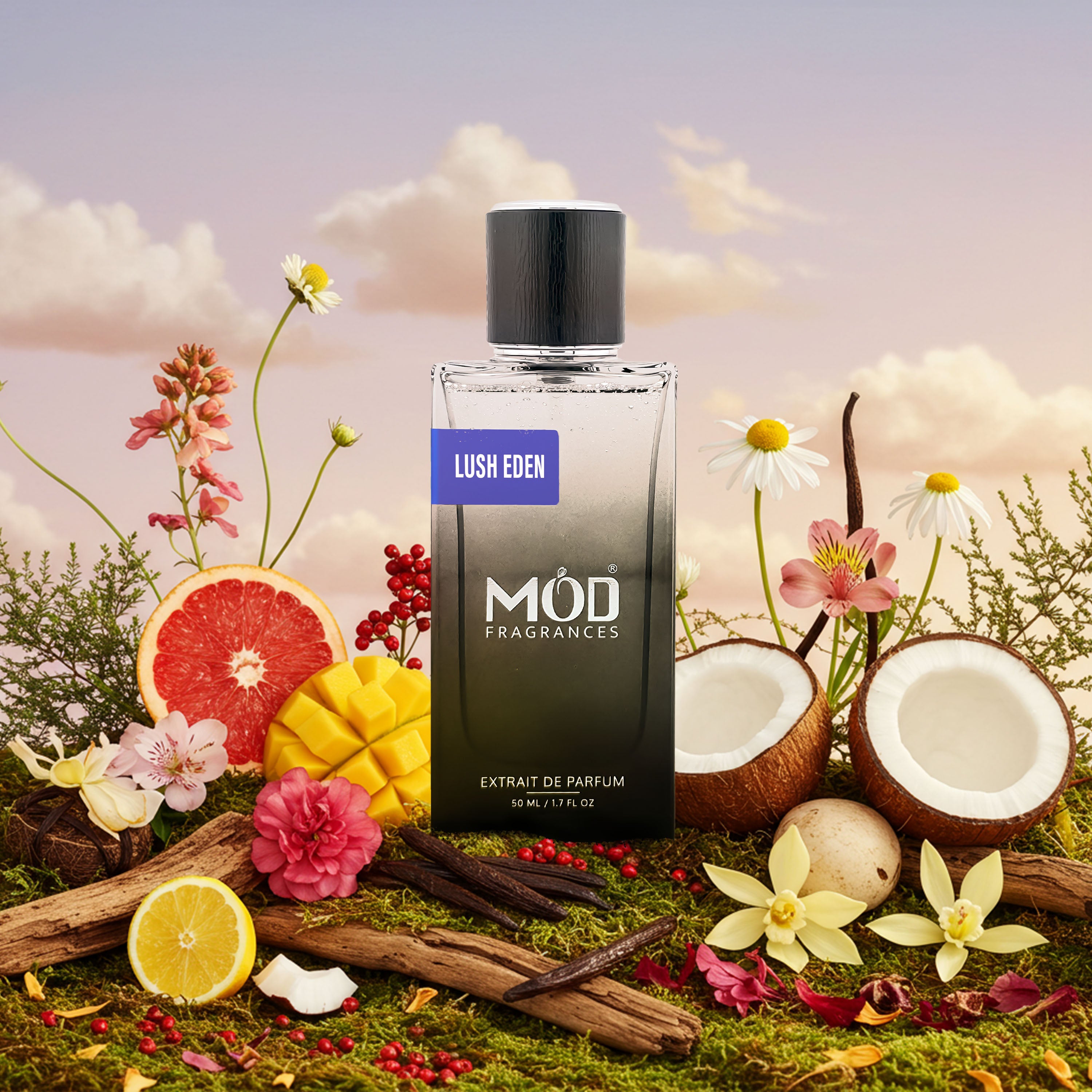 Lush Eden is a luxurious unisex extrait de parfum that transports you to an exotic paradise with every spray. Inspired by Moonlight in Heaven, this fragrance balances vibrant fruits, creamy florals, and warm gourmand notes to create a sophisticated scent that lingers beautifully.