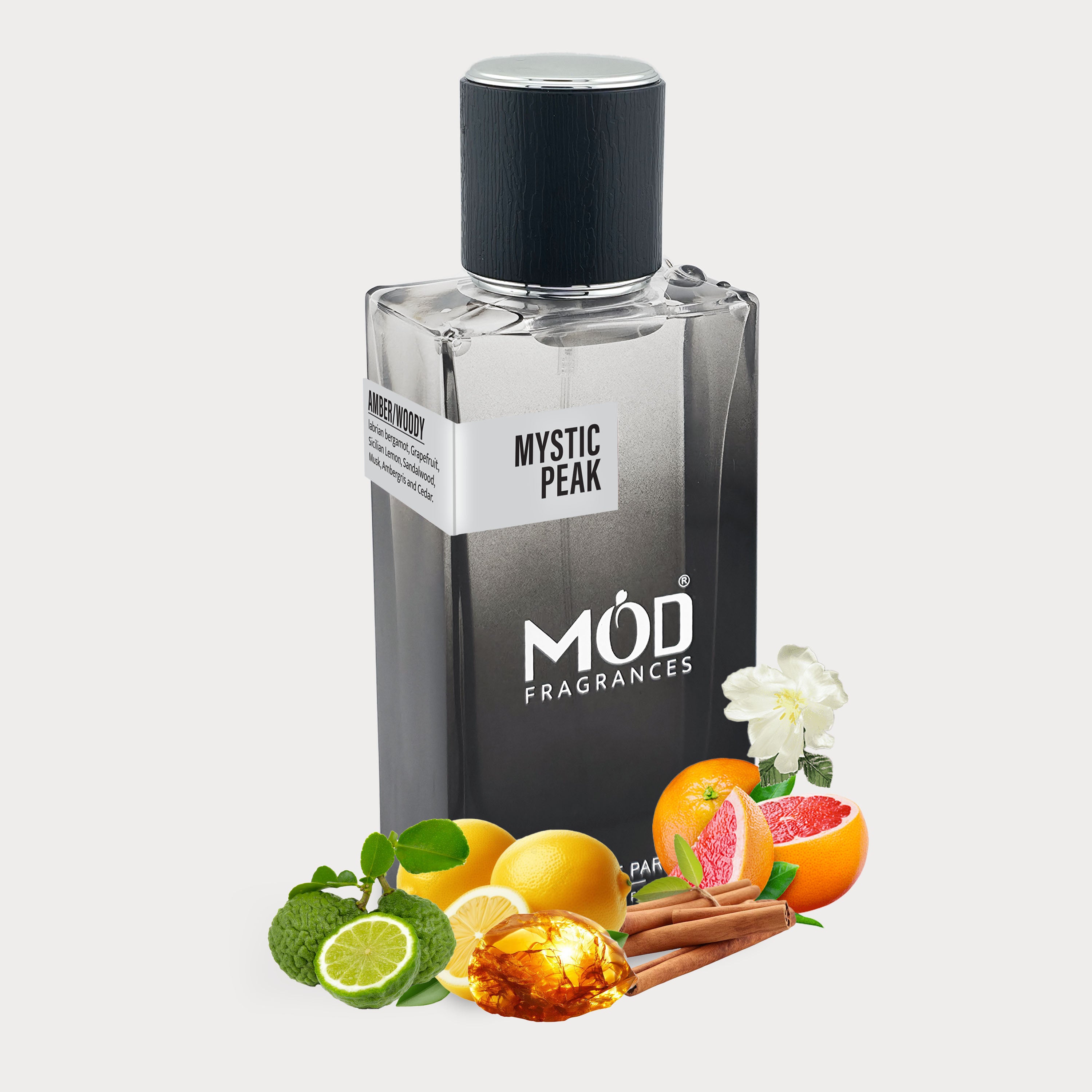 Mystic Peak begins with an invigorating burst of Calabrian bergamot, Grapefruit, and Sicilian Lemon. These zesty citrus notes awaken the senses with an energetic freshness, setting the stage for a fragrance journey that embodies both vitality and exploration.