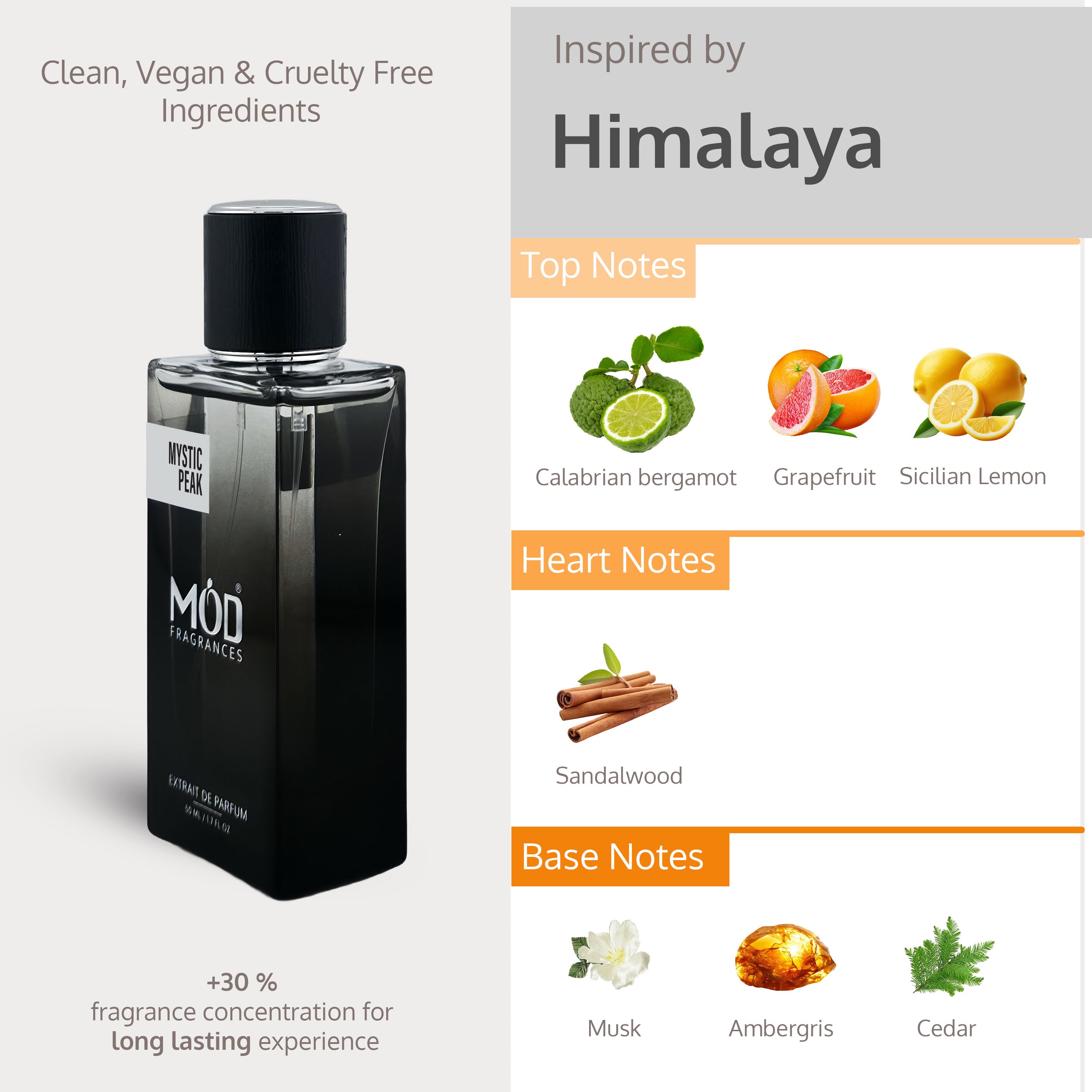 Mystic Peak Extrait de Parfum is more than just a fragrance—it’s an olfactory journey. From its energizing citrus opening to its serene heart and sensual base, it transports you to the mystical heights of the Himalayas where adventure and tranquility converge. Perfect for those who seek a scent that exudes freshness, depth, and elegance.