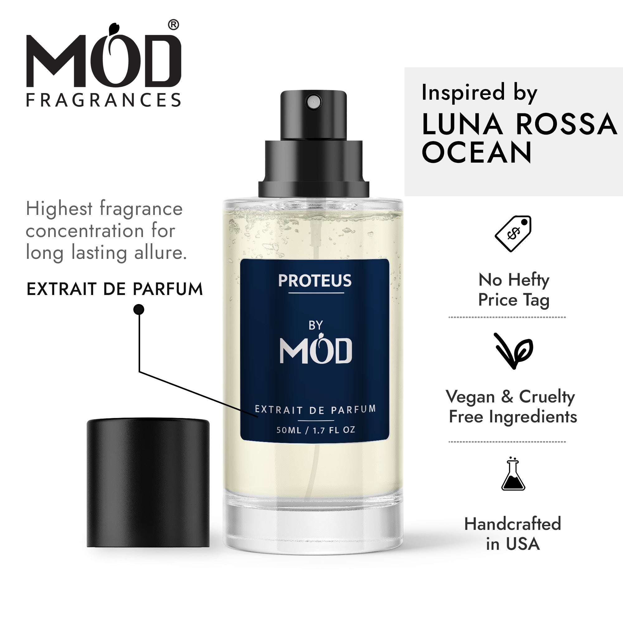 Immerse yourself in the invigorating depths of Proteus, a fougère extrait de parfum designed for the modern man who commands attention with effortless confidence. Inspired by the spirit of oceanic freshness, this long-lasting fragrance masterfully blends bright, aromatic, and sensual notes for an unforgettable olfactory journey.